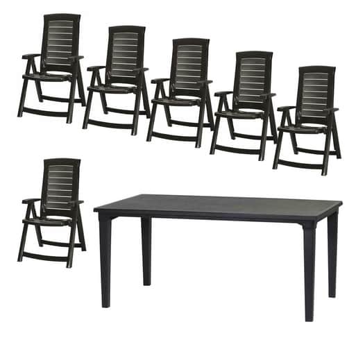 Das ALLIBERT Gartenmöbelset »Aruba« ist sorgfältig zusammengestellt, um Ihnen ein komplettes Ensemble für Ihre Terrasse, Ihren Balkon oder Ihren Garten zu bieten. Mit sechs bequemen Stühlen und einem großzügigen Tisch ist dieses Set perfekt geeignet, um Gäste zu empfangen und gemeinsame Erlebnisse im Freien zu schaffen. Die durchdachte Gestaltung jedes einzelnen Elements garantiert nicht nur Funktionalität, sondern auch eine ästhetische Bereicherung für jeden Außenbereich.