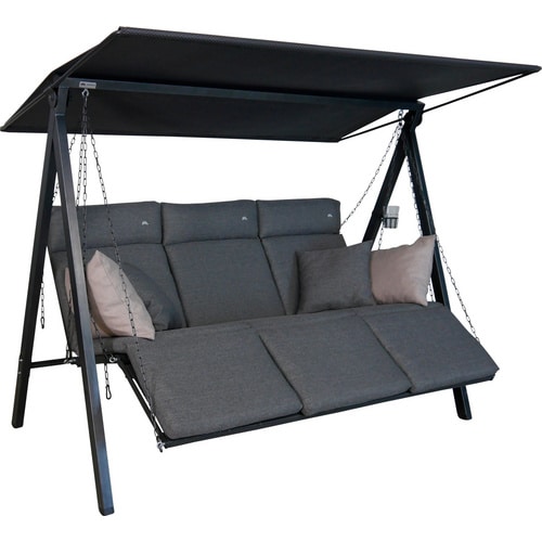 - Stilvolle Optik: Das moderne und elegante Design in Kombination mit den dezenten grauen Auflagen macht die Schaukel zu einem optischen Highlight für jede Outdoor-Location.