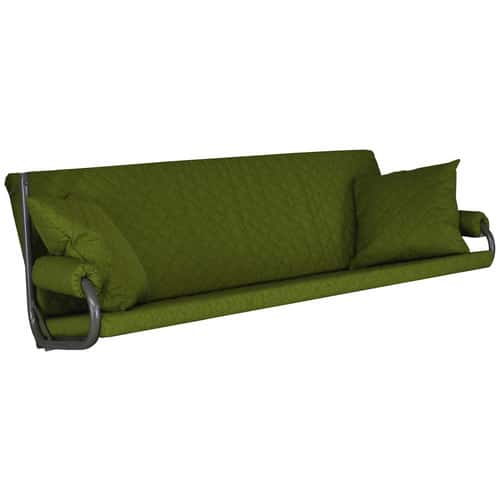 Die ruhige grüne Farbgebung strahlt Ruhe und Natürlichkeit aus und fügt sich nahtlos in verschiedenste Gartengestaltungen ein. Sie kann sowohl zu modernen als auch zu klassischen Gartenmöbeln kombiniert werden und verleiht Ihrer Hollywoodschaukel eine einladende und gemütliche Ausstrahlung. Die großzügige Liegefläche ermöglicht es mehreren Personen, bequem Platz zu nehmen oder sich auszustrecken und zu entspannen.