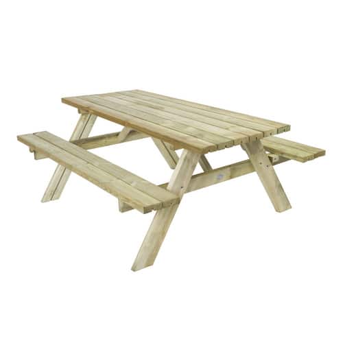 | Stil | Klassischer Picknicktisch mit integrierten Bänken |