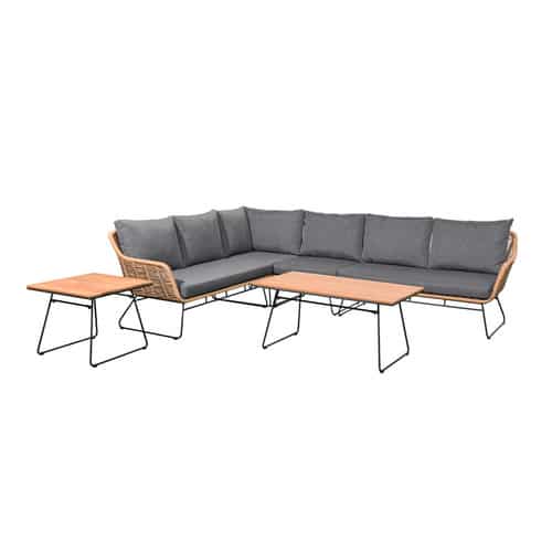 - Stahlkonstruktion: Der tragende Rahmen aus hochwertigem Stahl bietet exzellente Robustheit und Formstabilität. Stahl ist bekannt für seine Widerstandsfähigkeit gegenüber mechanischer Beanspruchung und gewährleistet eine lange Lebensdauer des Loungesets. Die Oberflächen sind sorgfältig behandelt, um Korrosion vorzubeugen und eine ansprechende Optik über Jahre hinweg zu bewahren.