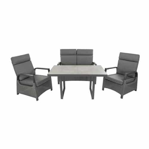 - Optimaler Sitzkomfort: Die ergonomisch geformten Elemente und die bequemen, wetterbeständigen Auflagen laden zum Entspannen ein.