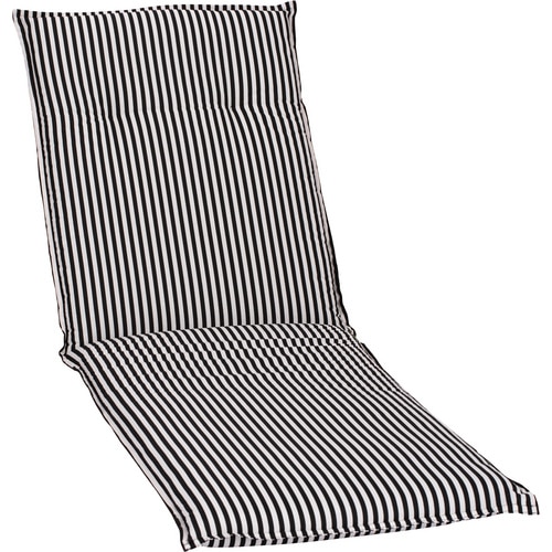 Diese Liegenauflage wurde entwickelt, um Ihnen ein Höchstmaß an Entspannung zu ermöglichen. Das klassische schwarz-weiße Streifenmuster ist zeitlos und fügt sich harmonisch in nahezu jede Gartengestaltung ein. Die großzügigen Abmessungen von 58 cm in der Breite und 191 cm in der Länge bieten ausreichend Platz für erholsame Stunden an der frischen Luft. Die durchdachte Polsterung sorgt für ein angenehmes Liegegefühl und unterstützt Ihren Körper optimal.
