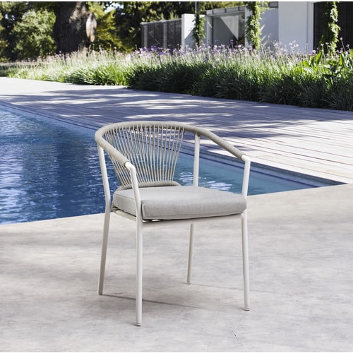 - Zeitloses Design: Die klare Linienführung und die klassische weiße Farbgebung machen diesen Diningsessel zu einem vielseitigen Möbelstück, das sich nahtlos in jede Gartengestaltung einfügt.