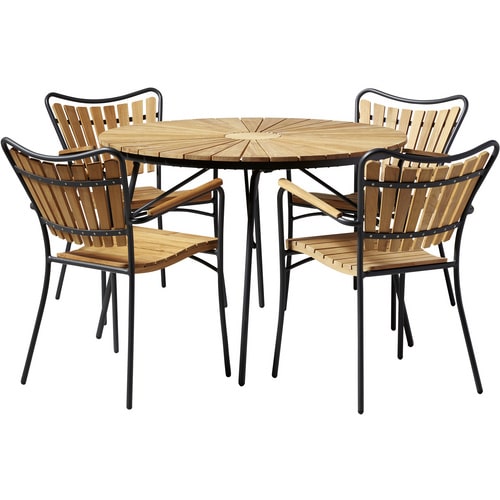 Cinas Gartenmöbelset, 4 Sitzplätze, Teakholz – grau: Elegante Esskultur für Ihre Terrasse