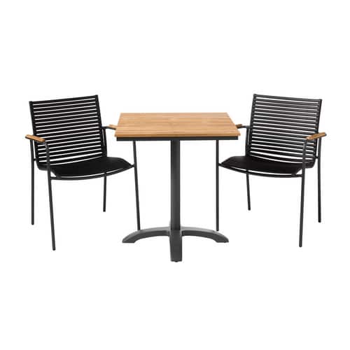 - Zeitloses, modernes Design: Die Kombination aus natürlichem Teakholz und schwarzer Oberflächenbehandlung fügt sich elegant in diverse Außenbereiche ein und verleiht Ihrem Garten oder Ihrer Terrasse eine stilvolle Note.