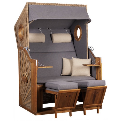 - Sichtschutz und Geborgenheit: Die geschlossene Bauweise des Strandkorbs bietet Ihnen Privatsphäre und schützt vor leichtem Wind und neugierigen Blicken.