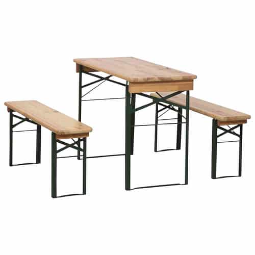 Die FUN STAR Festzeltgarnitur zeichnet sich durch ihre intelligente und praktische Gestaltung aus. Die Garnitur besteht aus einem stabilen Tisch und vier komfortablen Sitzbänken, die so konzipiert sind, dass sie optimalen Platz für vier Personen bieten. Der Aufbau ist denkbar einfach und erfordert kein kompliziertes Werkzeug, was einen schnellen Einsatz ermöglicht. Wenn die Garnitur einmal nicht benötigt wird, lässt sie sich platzsparend zusammenklappen und verstauen. Diese Flexibilität ist besonders vorteilhaft für kleinere Gärten, Balkone oder für die temporäre Nutzung bei Veranstaltungen.