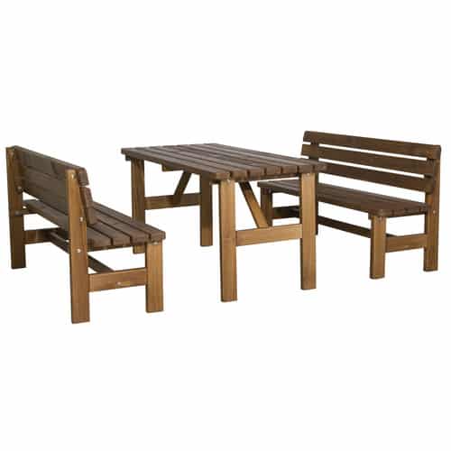 Kiefernholz ist im Vergleich zu einigen anderen Hölzern wie Harthölzern eher leicht. Das Gewicht des Sets hängt von der Größe und dem genauen Umfang ab, ist aber in der Regel so bemessen, dass die Möbelstücke von ein bis zwei Personen gut bewegt und umgestellt werden können. Dies ermöglicht Ihnen eine flexible Gestaltung Ihres Außenbereichs.