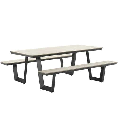 | Design-Merkmale | Klassisches Picknicktisch-Design mit integrierten Bänken, das Geselligkeit fördert. Klare Linienführung und zeitlose Farbgebung in Schwarz passen zu jedem Outdoor-Ambiente. |