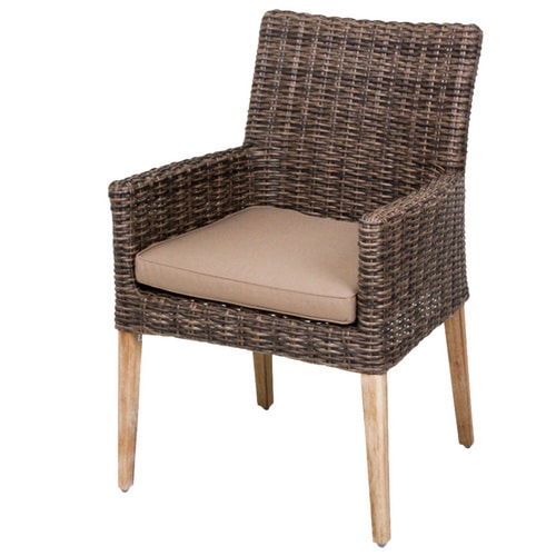 Der »Norvell« Armstuhl zeichnet sich durch seine durchdachte Materialkombination aus, die sowohl optische Akzente setzt als auch für Langlebigkeit und Pflegeleichtigkeit sorgt. Das Gestell aus robustem Aluminium bildet die stabile Basis des Stuhls. Aluminium ist bekannt für seine Korrosionsbeständigkeit, was es zu einem idealen Werkstoff für den Einsatz im Freien macht, auch bei wechselnden Witterungsbedingungen. Es ist zudem leicht, was das Umstellen der Möbel erleichtert. Ergänzt wird das Aluminiumgestell durch Elemente aus FSC-zertifiziertem Akazienholz, das mit seiner warmen Optik und natürlichen Maserung einen edlen Kontrast bildet. Akazienholz ist von Natur aus widerstandsfähig gegen Feuchtigkeit und Insektenbefall, was eine lange Lebensdauer gewährleistet. Der Sitz- und Rückenbereich ist mit einem hochwertigen Kunststoffgeflecht bespannt. Dieses Geflecht ist UV-beständig, wetterfest und pflegeleicht, was sicherstellt, dass der Stuhl auch nach Jahren der Nutzung seine attraktive Erscheinung behält. Die Farbe Braun unterstreicht die natürliche und harmonische Ausstrahlung des Stuhls.