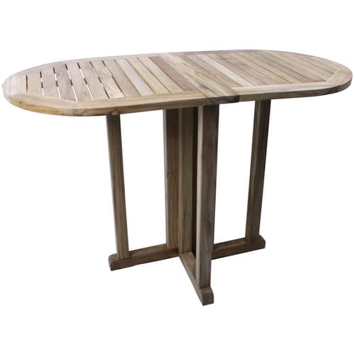 - Hochwertiges Teakholz: Die Tischplatte besteht aus erstklassigem Teakholz, bekannt für seine Langlebigkeit, Witterungsbeständigkeit und seine einzigartige Maserung, die mit der Zeit eine silbergraue Patina entwickelt und dem Tisch einen charaktervollen Look verleiht.