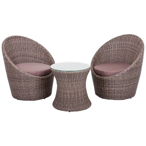 Das GARDEN PLEASURE Club-Set ist nicht auf einen bestimmten Bereich Ihres Außenbereichs beschränkt. Seine Vielseitigkeit macht es zu einem flexiblen Begleiter für verschiedenste Outdoor-Aktivitäten. Auf der sonnigen Terrasse wird es zum perfekten Ort für den Morgenkaffee oder ein entspanntes Abendessen im Freien. Auf dem Balkon bietet es eine komfortable Sitzmöglichkeit, um die Aussicht zu genießen und dem Alltagsstress zu entfliehen. Selbst in einer kleinen Gartenecke kann das Set eine einladende Oase schaffen, umgeben von blühenden Pflanzen. Die kompakte Größe des 3-teiligen Sets macht es ideal für kleinere Flächen, ohne Kompromisse beim Komfort einzugehen. Es kann auch als Ergänzung zu einer bestehenden größeren Sitzgruppe dienen oder als eigenständiger Ruhebereich fungieren. Die braune Farbe fügt sich harmonisch in verschiedene Umgebungen ein, sei es ein moderner Stadtgarten, ein ländlicher Hof oder eine mediterran gestaltete Terrasse.
