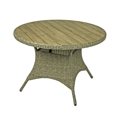 Dank seiner wetterfesten Materialien ist der Tisch für den Einsatz im Freien konzipiert. Für eine langfristige Werterhaltung und um die Materialien zu schonen, empfehlen wir jedoch, den Tisch vor starken Niederschlägen, Frost und intensiver Sonneneinstrahlung zu schützen, wenn er längere Zeit nicht genutzt wird.