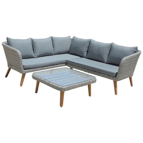 - Akazienholz-Akzente: Veredelt wird das Design durch sorgfältig ausgewählte Akazienholz-Elemente, beispielsweise an den Armlehnen. Akazie ist ein Hartholz, das für seine natürliche Widerstandsfähigkeit gegen Feuchtigkeit und Insektenbefall geschätzt wird. Die Maserung und die warme Farbe des Holzes setzen einen attraktiven Kontrast zum kühlen Grau des Aluminiums und Kunststoffs und verleihen dem Möbelset eine natürliche, elegante Note. Die Oberflächenbehandlung des Holzes schützt es zusätzlich und betont die natürliche Schönheit.