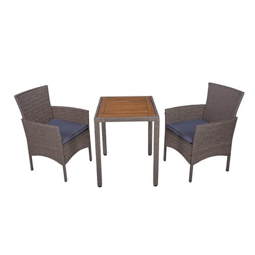 Die genaue Sitzhöhe ist nicht in den Basisangaben spezifiziert, aber bei typischen kompakten Gartenmöbelsets dieser Art liegt die Sitzhöhe meist zwischen 40 und 45 cm. Dies ist eine Standardhöhe, die für die meisten Nutzer einen bequemen Sitzkomfort gewährleistet.