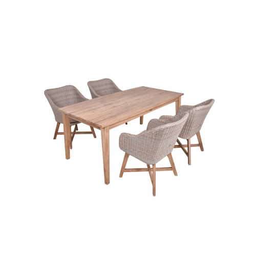 Das »VISALIA« Set von GARDEN PLEASURE zeichnet sich durch seine klare Linienführung und die warme, natürliche Farbgebung aus. Dieses Möbelset ist mehr als nur eine Sitzgelegenheit; es ist ein Statement für stilbewusste Outdoor-Gestaltung. Die sorgfältige Verarbeitung garantiert nicht nur eine ansprechende Optik, sondern auch eine hohe Funktionalität und eine angenehme Haptik, die zum Verweilen einlädt.