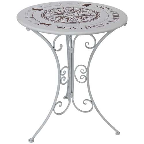 Der Tisch ist durch seine Pulverbeschichtung aus Eisen gut vor Witterungseinflüssen geschützt und kann bedenkenlos im Freien verwendet werden. Für eine maximale Langlebigkeit empfehlen wir dennoch, ihn bei extremen Wetterbedingungen oder über den Winter abzudecken oder frostfrei zu lagern.