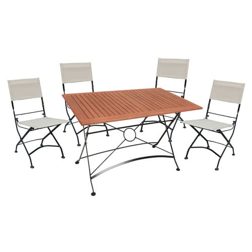 - Komplettes Set: Mit einem Tisch und vier Stühlen erhalten Sie eine sofort einsatzbereite Essgruppe für bis zu vier Personen.