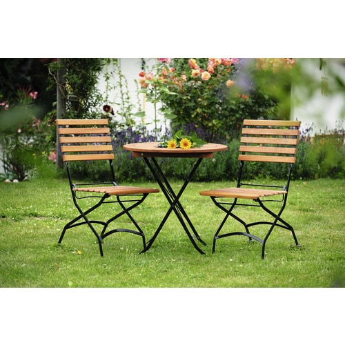 - Vielseitige Einsatzmöglichkeiten: Ob als charmantes Bistro-Set auf dem Balkon, als Ruhepole im Rosengarten oder als stilvolles Ensemble auf der Gartenterrasse – das »Schlossgarten«-Set passt sich Ihren Bedürfnissen an.