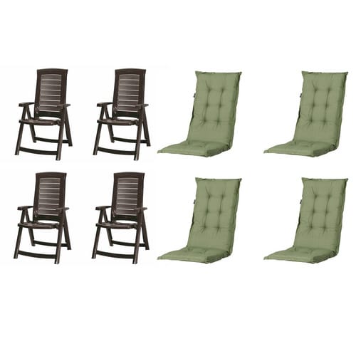 | Set-Inhalt | 4 x Klappsessel (Graphit), 4 x Auflage (Grün) |