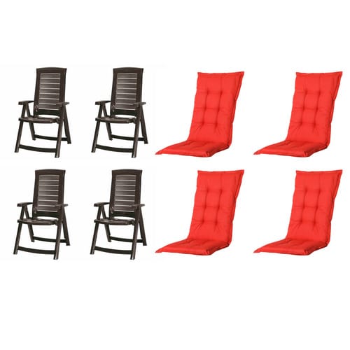 | Set-Inhalt | 4 x JARDIN Klappsessel (Graphit) + 4 x Sitzauflage (Rot) |