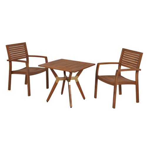 Die Stühle sind so konzipiert, dass sie nicht nur stabil stehen, sondern auch einen angenehmen Sitzkomfort bieten. Die Sitzfläche und die Rückenlehne sind auf die natürliche Haltung des Körpers abgestimmt, sodass auch längere Aufenthalte im Freien entspannt genossen werden können. Die Tischgröße ist ideal dimensioniert, um Platz für zwei Personen zu schaffen, ohne den begrenzten Raum zu überladen. Ein kleiner Frühstücksteller, zwei Kaffeetassen oder ein gutes Buch finden hier problemlos Platz. Die kompakte Bauweise ermöglicht es zudem, das Set bei Bedarf auch leicht umzustellen oder zu verstauen, was die Flexibilität erhöht.