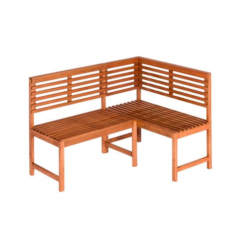 Die Eckbank besteht aus Massivholz. Die genaue Holzart kann je nach Produktionscharge variieren, ist aber typischerweise eine robuste Holzsorte, die für ihre Dauerhaftigkeit und Widerstandsfähigkeit im Außenbereich bekannt ist.