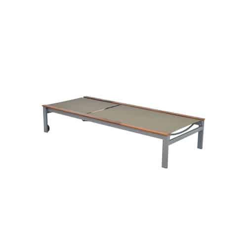 Ergänzt wird das Aluminium durch Akazienholz-Elemente, die für eine natürliche und warme Ausstrahlung sorgen. Akazie ist ein Hartholz, das für seine hervorragende Widerstandsfähigkeit gegen Feuchtigkeit und UV-Strahlung bekannt ist. Die Holzdetails, die typischerweise an den Armlehnen oder als Akzente eingesetzt werden, sind in einem ansprechenden Naturton gehalten und unterstreichen den stilvollen Charakter der Liege. Die Oberflächen des Holzes sind in der Regel fein geschliffen und so behandelt, dass ihre natürliche Schönheit erhalten bleibt und gleichzeitig eine Langlebigkeit gewährleistet ist.