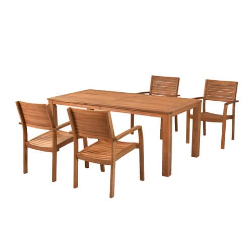 Das Akazienholz des MERXX Gartenmöbel-Diningsets »Batavia« ist geölt. Diese Oberflächenbehandlung dient dem Schutz des Holzes und bringt die natürliche Schönheit der Maserung und Farbe zur Geltung. Die Ölbehandlung sollte im Laufe der Zeit bei Bedarf wiederholt werden, um den Schutz und die Optik zu erhalten.