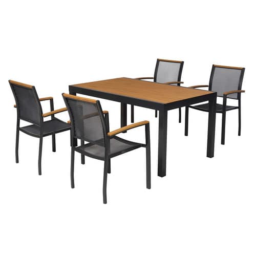 Die Tischplatte des MERXX »Itanos« Diningsets besteht ebenfalls aus Aluminium. Dies kann je nach Modell eine solide Platte oder eine lamellierte Ausführung sein, die für zusätzliche Stabilität und eine ansprechende Optik sorgt.