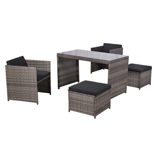 Die Produktbeschreibung konzentriert sich auf das Gestell und die Grundstruktur des Sets. Polsterungen sind in der Regel optional erhältlich und nicht standardmäßig Teil dieses 5-teiligen Diningsets. Sie können separate Auflagen erwerben, um den Sitzkomfort weiter zu erhöhen.
