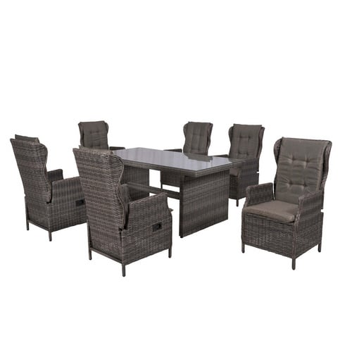 Die 7-teilige Zusammenstellung bietet eine hervorragende Grundausstattung, die Sie bei Bedarf mit zusätzlichen Einzelstühlen oder passenden Beistelltischen ergänzen können, um Ihren Außenbereich noch funktionaler zu gestalten.