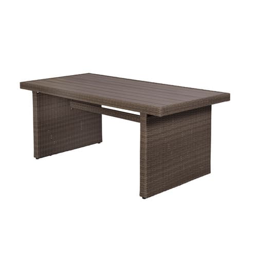 Der dazugehörige Tisch ist groß genug, um bequem vier Personen Platz zu bieten. Seine quadratische oder rechteckige Form, je nach spezifischer Ausführung des Tisches, ist ideal für kleinere bis mittelgroße Terrassen und Balkone. Die Höhe des Tisches ist auf eine angenehme Essenshöhe abgestimmt und ermöglicht eine unkomplizierte Nutzung mit den Stühlen.