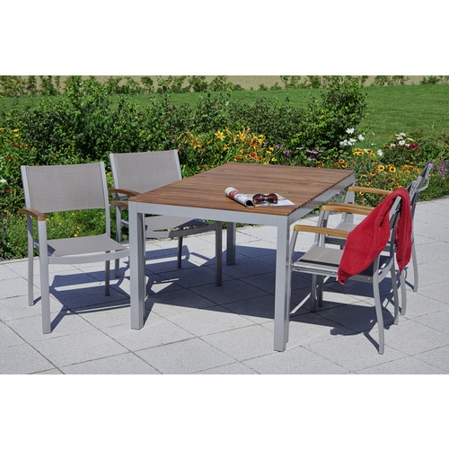 Die Kombination der drei Hauptmaterialien – Aluminium, Textil und Akazienholz – ist ein Meisterwerk der Materialwissenschaft und des Designs. Aluminium bildet das stabile und korrosionsbeständige Grundgerüst der Möbel. Dieses Leichtmetall ist nicht nur äußerst widerstandsfähig gegen Witterungseinflüsse wie Regen und Feuchtigkeit, sondern auch pflegeleicht und verrottungsfrei. Seine Pulverbeschichtung schützt zusätzlich vor Kratzern und sorgt für eine langanhaltende Farbintensität. Das Textilgewebe, oft als Outdoorgewebe bezeichnet, ist speziell für den Einsatz im Freien konzipiert. Es widersteht UV-Strahlung, verhindert Stockfleckenbildung und trocknet rasch nach einem Regenschauer. Die angenehme Haptik macht es zu einer komfortablen Sitzfläche. Als Akzent und für zusätzliche Stabilität wird hochwertiges Akazienholz eingesetzt. Akazie ist ein Naturprodukt, das sich durch seine natürliche Härte und Dauerhaftigkeit auszeichnet. Es ist von Natur aus resistent gegen Feuchtigkeit und Insektenbefall, was es zu einem idealen Holz für den Außenbereich macht. Die warme, natürliche Maserung des Holzes verleiht dem Set eine zusätzliche Dimension von Luxus und Gemütlichkeit und bildet einen stilvollen Kontrast zum kühlen Aluminium und dem technischen Textil.