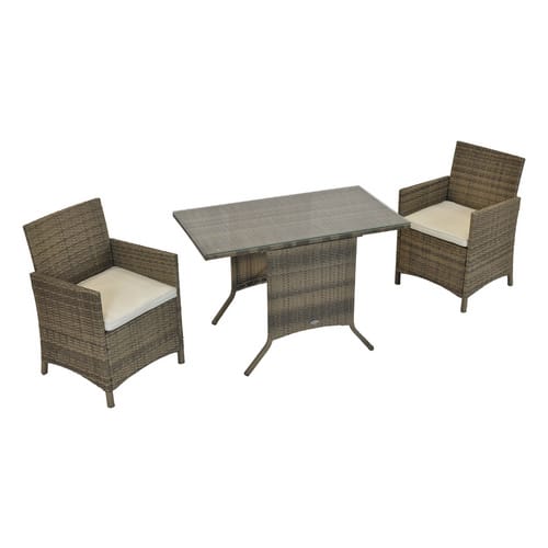 Die Kompaktheit des 3-teiligen Sets macht es zu einer idealen Wahl für kleinere Außenbereiche, wo jeder Zentimeter zählt. Gleichzeitig ist es robust genug, um auch in größeren Gärten als stilvoller Akzent zu dienen oder als zusätzliche Sitzmöglichkeit bei geselligen Runden. Die leichten Stühle lassen sich mühelos umstellen, um den Sonnenschein optimal auszunutzen oder bei Bedarf mehr Platz zu schaffen.