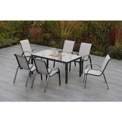 FAQ – Häufig gestellte Fragen zu MERXX Gartenmöbelset »Amalfi«, 7-tlg., stapelbar, Aluminium/Textil – silberfarben