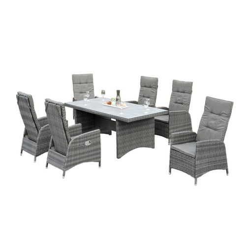 Entdecken Sie das MERXX Gartenmöbelset »Bologna«, ein exquisites 7-teiliges Ensemble, das Funktionalität, Langlebigkeit und ansprechendes Design vereint. Dieses Set ist die ideale Wahl für anspruchsvolle Gartenliebhaber und Terrassenbesitzer, die Wert auf Qualität und Ästhetik legen und ihren Außenbereich in eine Oase der Entspannung und des geselligen Beisammenseins verwandeln möchten. Mit seiner modernen Farbgebung in Grau fügt es sich nahtlos in unterschiedlichste Outdoor-Ambiente ein und schafft eine stilvolle Atmosphäre für Ihre Freizeit.