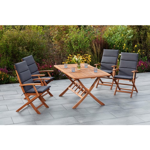 FAQ – Häufig gestellte Fragen zu MERXX Gartenmöbelset »Comodoro«, 4 Sitzplätze, Eukalyptusholz, inkl. Auflagen – grau