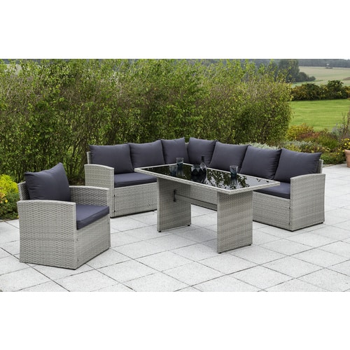 Häufig gestellte Fragen zu MERXX Gartenmöbelset »Lanzarote«, 7 Sitzplätze, Stahl/Kunststoffgeflecht, pulverbeschichtet – grau
