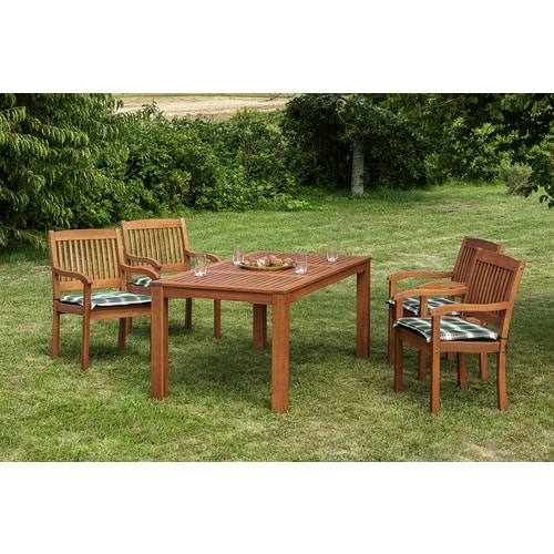 | Inhalt des Sets | 2 x Stühle, 1 x Bank, 1 x Tisch, 4 x Sitzauflagen (grün) |