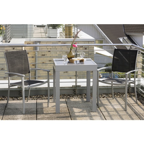 - Platzsparende Konstruktion: Das 3-teilige Set ist ideal für kleinere Flächen wie Balkone oder kompakte Terrassen geeignet und bietet dennoch ausreichend Platz für zwei Personen.
