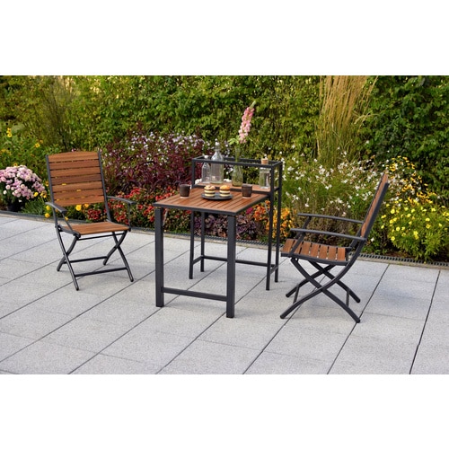 - Witterungsbeständigkeit: Die pulverbeschichtete Oberfläche schützt das Set effektiv vor Regen, UV-Strahlung und Temperaturschwankungen, was eine unkomplizierte Pflege ermöglicht.