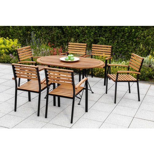 Häufig gestellte Fragen zu MERXX Gartenmöbelset »Schlossgarten«, 6 Sitzplätze, Eukalyptusholz – schwarz