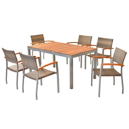 - Modernes Design: Die Kombination aus Aluminium, Kunststoff und Akazienholz verleiht dem Set eine zeitlose Eleganz, die zu verschiedenen Einrichtungsstilen passt.