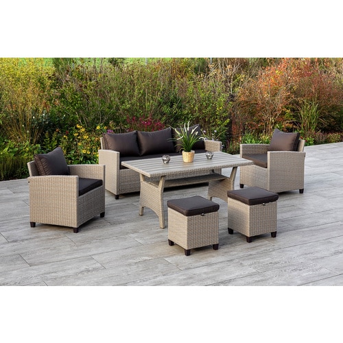 Das MERXX Gartenmöbelset »Striano« ist für 5 Personen ausgelegt. Dies bietet ausreichend Platz für eine kleine Familie oder eine Gruppe von Freunden, um bequem im Freien zu sitzen und gemeinsame Stunden zu genießen.