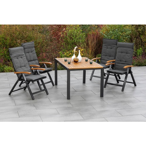 FAQ – Häufig gestellte Fragen zu MERXX Gartenmöbelset »Tilos«, 4 Sitzplätze, Aluminium/Akazienholz, inkl. Auflagen – grau