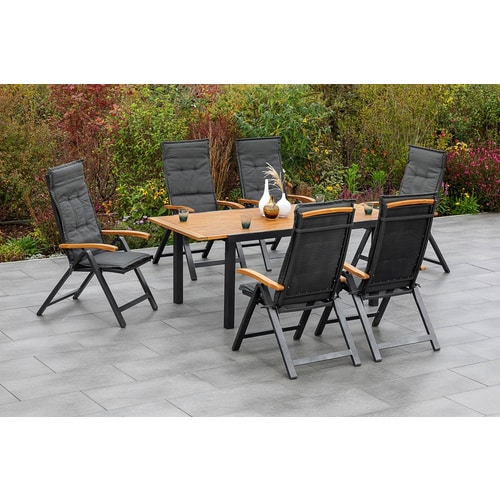 FAQ – Häufig gestellte Fragen zu MERXX Gartenmöbelset »Tilos«, 6 Sitzplätze, Aluminium/Akazienholz, inkl. Auflagen – grau