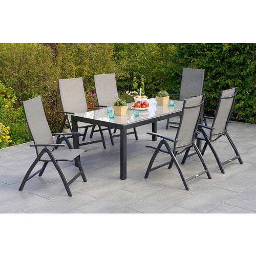 Das MERXX Gartenmöbelset »Vicenza« ist die ideale Lösung für alle, die Wert auf Stil, Komfort und Funktionalität legen. Mit seinem 7-teiligen Umfang bietet es ausreichend Platz für Familie und Freunde und verwandelt Ihren Garten oder Ihre Terrasse im Handumdrehen in eine einladende Oase der Entspannung. Dank des robusten und pflegeleichten Aluminiumrahmens sowie des angenehmen Textilbezugs ist dieses Set perfekt für den täglichen Gebrauch im Außenbereich konzipiert und verspricht langanhaltende Freude an Ihren Gartenmöbeln.