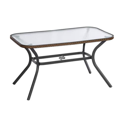 Der MERXX Gartentisch »Ravenna« zeichnet sich durch seine sorgfältig ausgewählten Materialien aus, die Langlebigkeit und eine ansprechende Ästhetik garantieren. Die Tischplatte aus Sicherheitsglas ist nicht nur ein optisches Highlight, sondern auch besonders widerstandsfähig gegenüber Umwelteinflüssen wie Sonneneinstrahlung, Feuchtigkeit und Temperaturschwankungen. Die braune Tönung des Glases verleiht dem Tisch eine warme und einladende Ausstrahlung, die sich harmonisch in natürliche Umgebungen einfügt. Das Untergestell, oft aus robusten und wetterbeständigen Materialien wie Aluminium oder beschichtetem Stahl gefertigt, sorgt für Stabilität und Standfestigkeit, selbst auf unebenem Untergrund. Die Konstruktion ist auf Langlebigkeit ausgelegt und widersteht den typischen Belastungen des Außeneinsatzes.